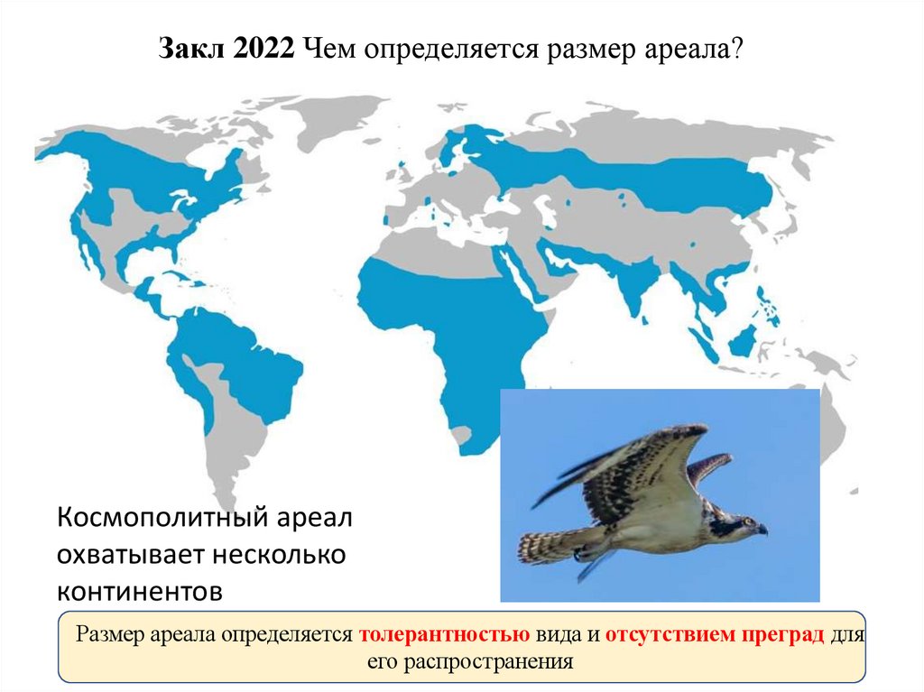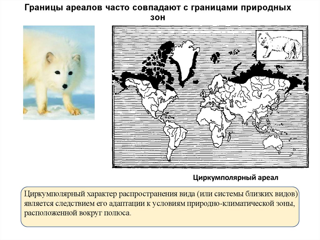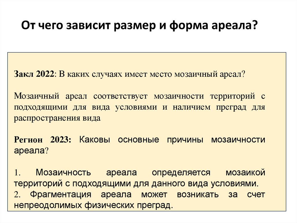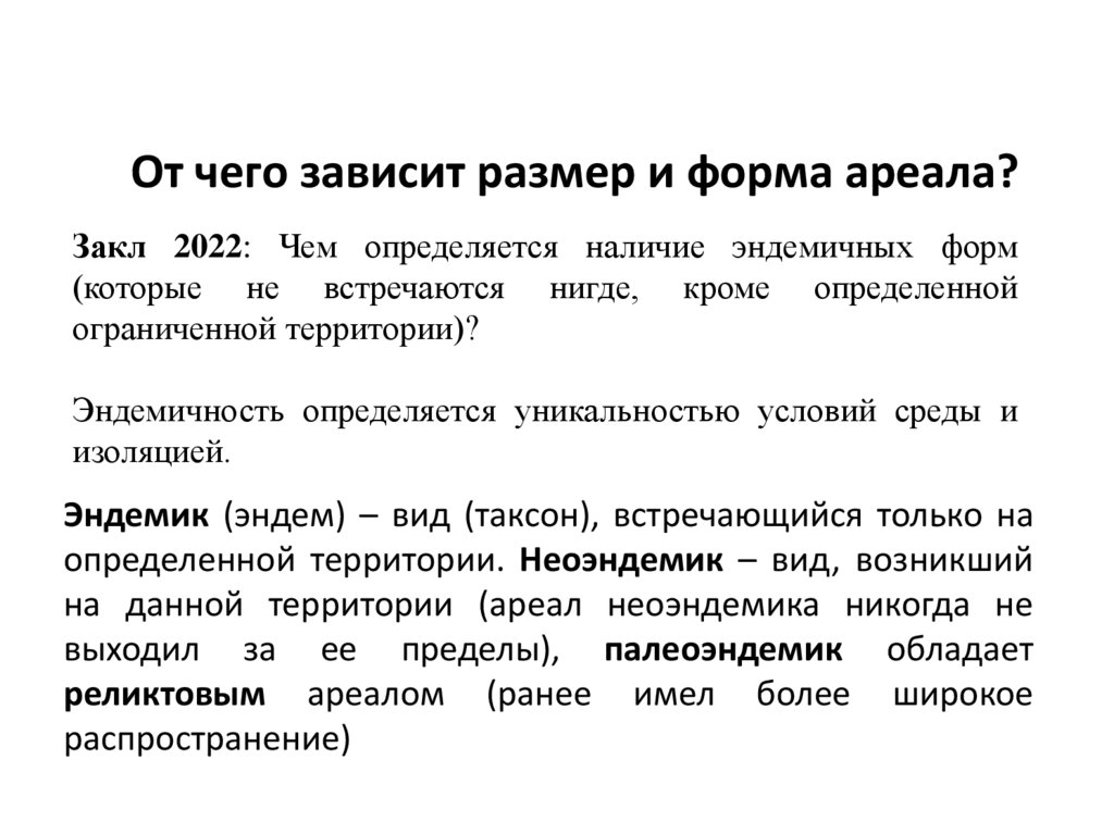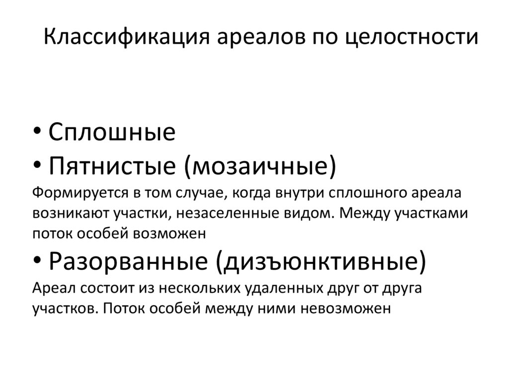 • Форма (тип) ареала определяется распределением