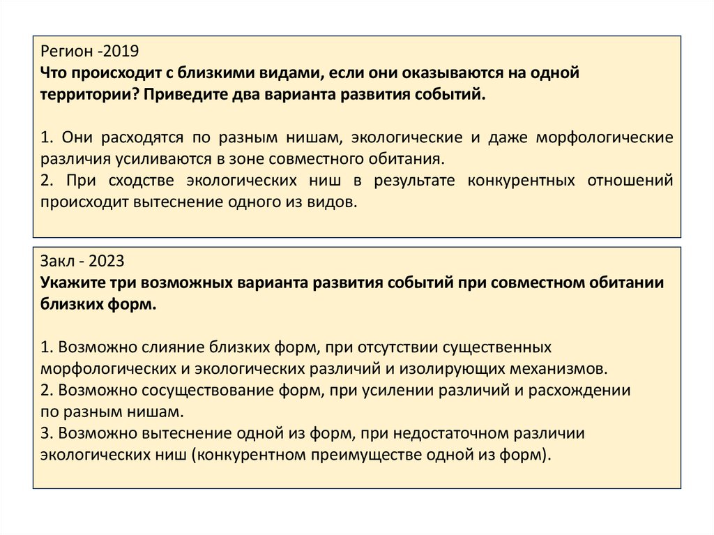 Регион -2019Что происходит с близкими видами, если они оказываются на одной