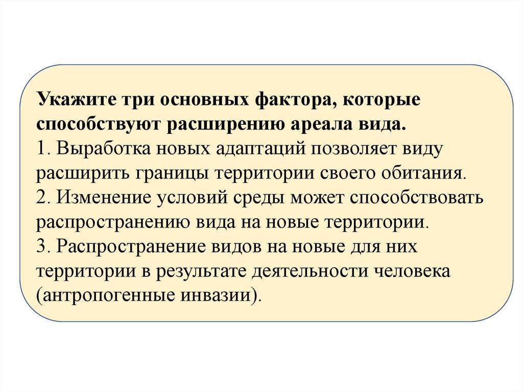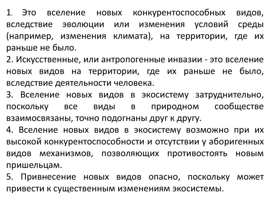 1. Это вселение новых конкурентоспособных видов,вследствие эволюции или изменения условий среды