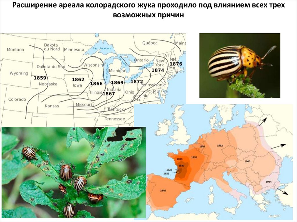 Расширение ареала колорадского жука проходило под влиянием всех трехвозможных причин