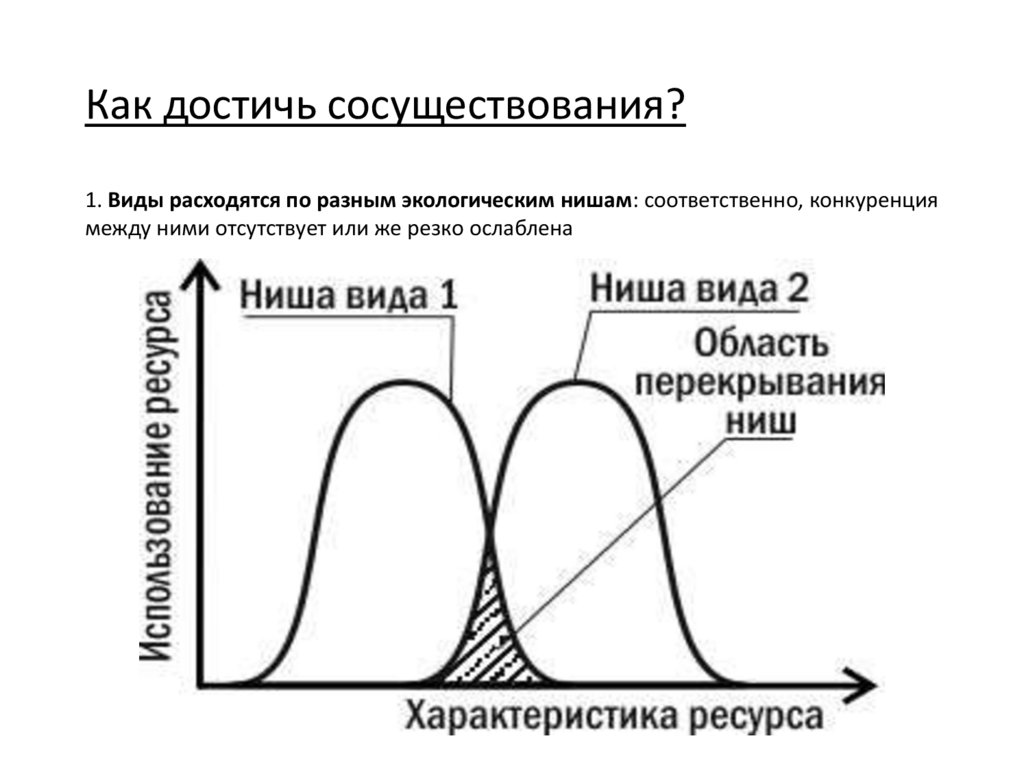 Как достичь сосуществования?1. Виды расходятся по разным экологическим нишам: соответственно, конкуренция