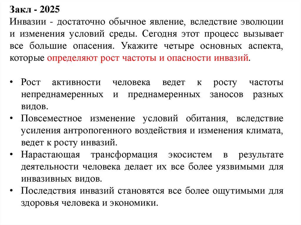 Закл - 2025Инвазии - достаточно обычное явление, вследствие эволюции