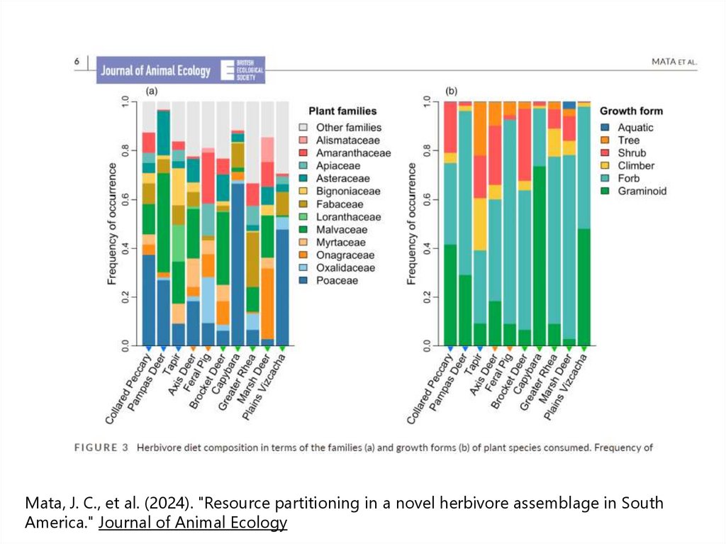 Mata, J. C., et al. (2024). "Resource partitioning in a novel herbivore assemblage in SouthAmerica." Journal of Animal Ecology