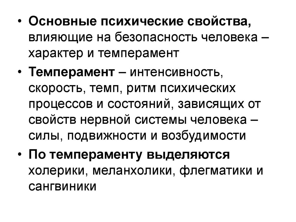 • Основные психические свойства,влияющие на безопасность человека –