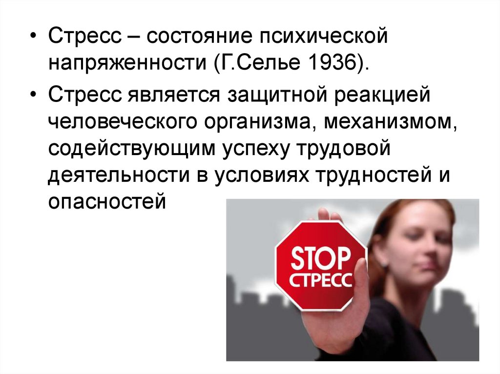 • Стресс – состояние психическойнапряженности (Г.Селье 1936).