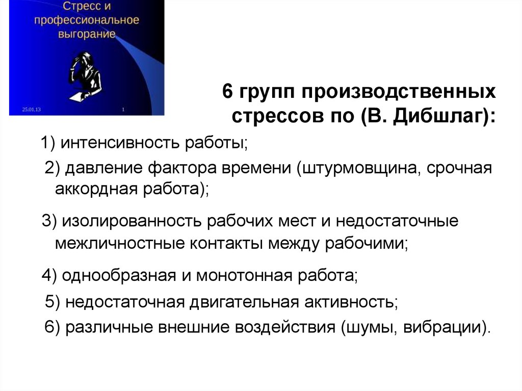 6 групп производственныхстрессов по (В. Дибшлаг):