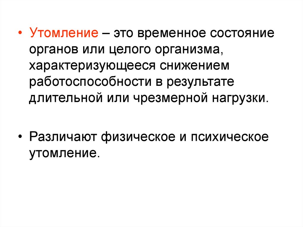 • Утомление – это временное состояниеорганов или целого организма,