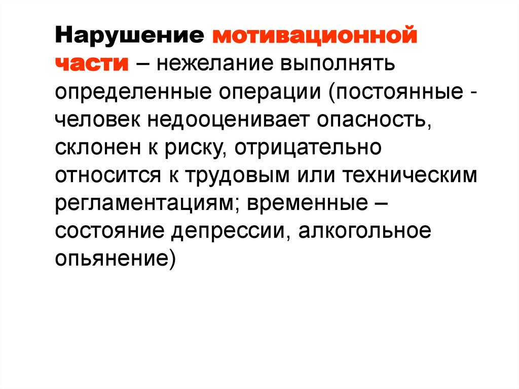 определенные операции (постоянные человек недооценивает опасность,