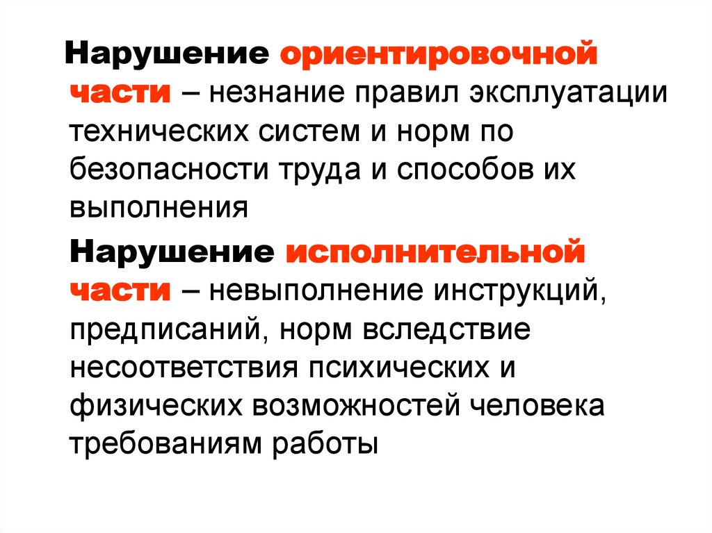 Нарушение ориентировочнойчасти – незнание правил эксплуатации