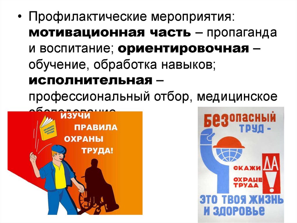 • Профилактические мероприятия:мотивационная часть – пропаганда