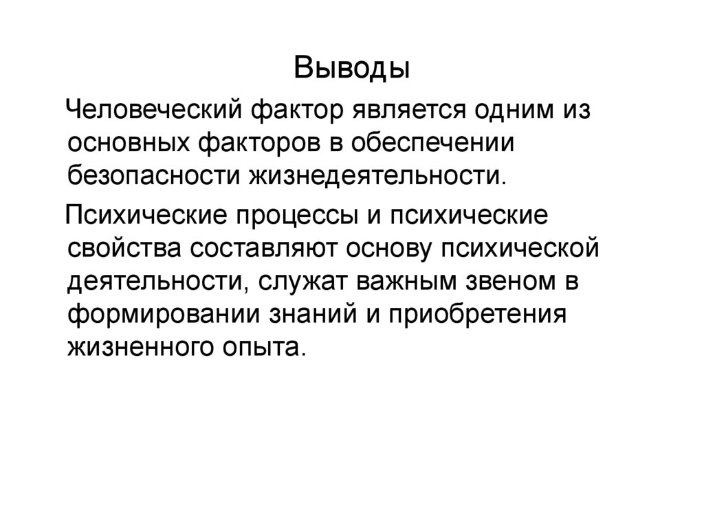 ВыводыЧеловеческий фактор является одним из