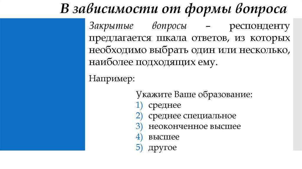 Вопросы социологической анкетыВ зависимости от формы выделяют: