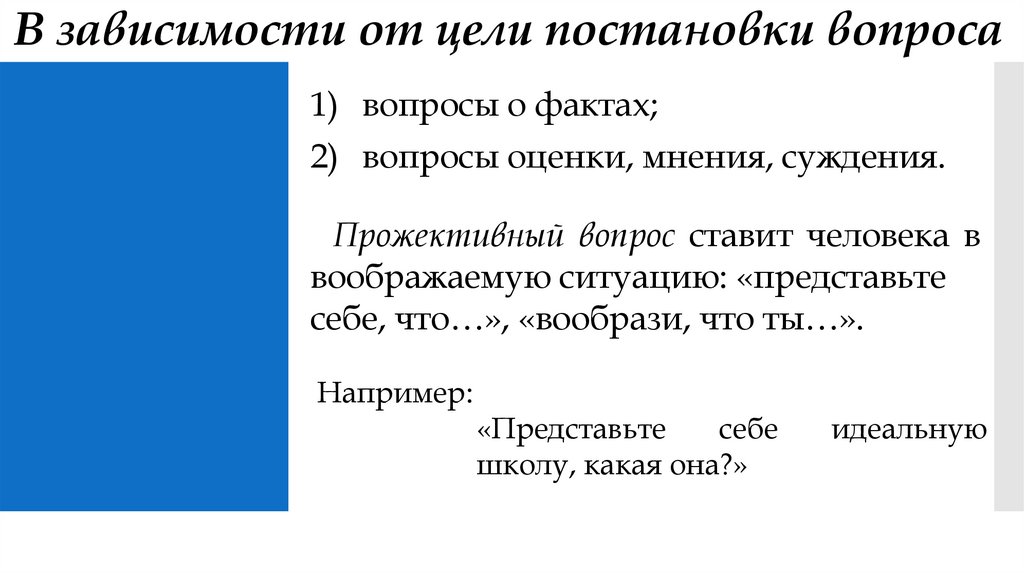 Цель — узнать личные, оценочные суждения опрашиваемого;