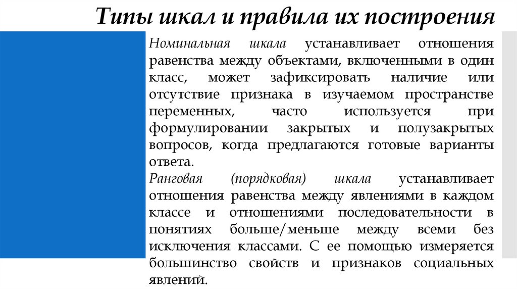 Типы шкал и правила их построенияПри