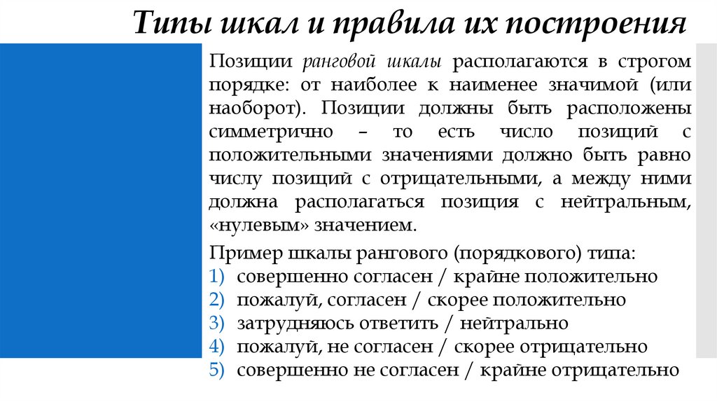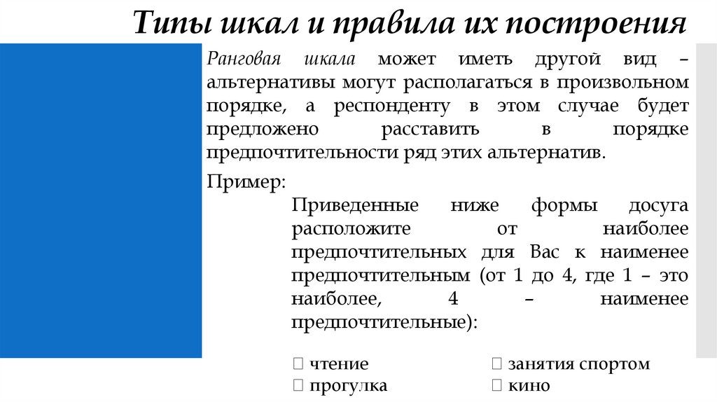 Типы шкал и правила их построенияРанговая шкала может иметь другой вид –