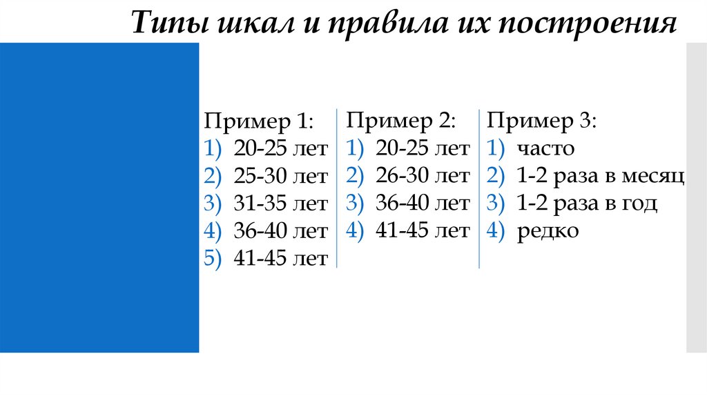 Типы шкал и правила их построенияПример 1: