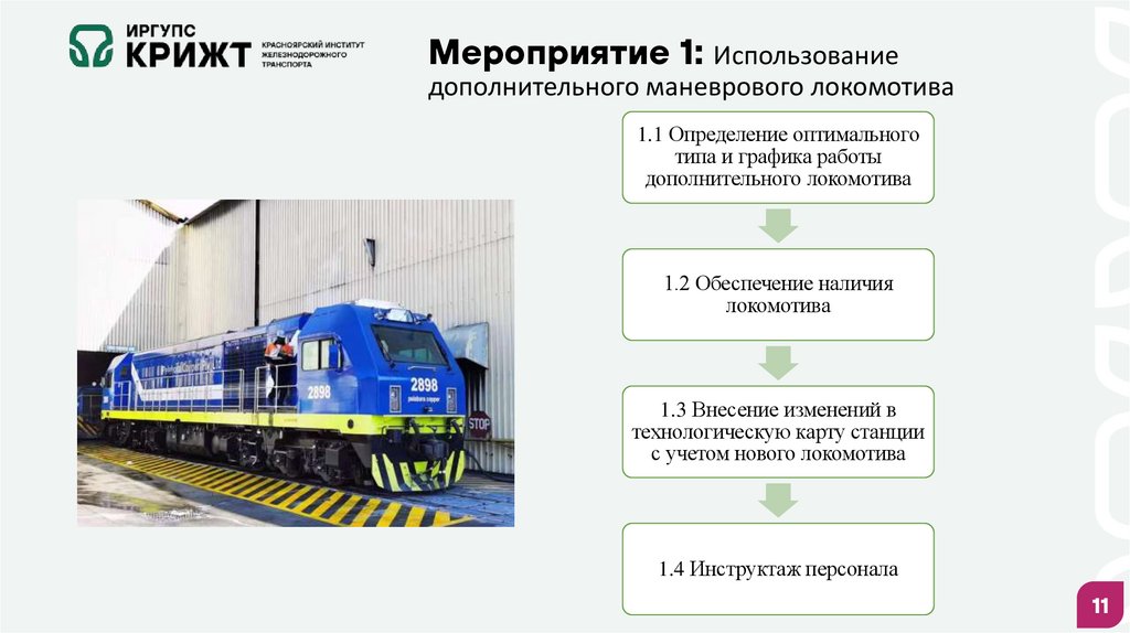 Мероприятие 1: Использованиедополнительного маневрового локомотива