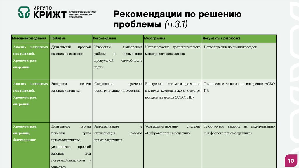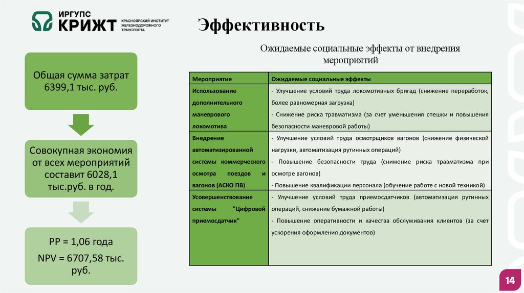- Улучшение условий труда осмотрщиков вагонов (снижение физической