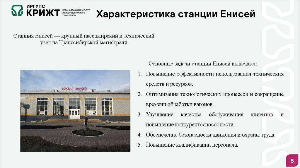 Характеристика станции ЕнисейСтанция Енисей — крупный пассажирский и технический