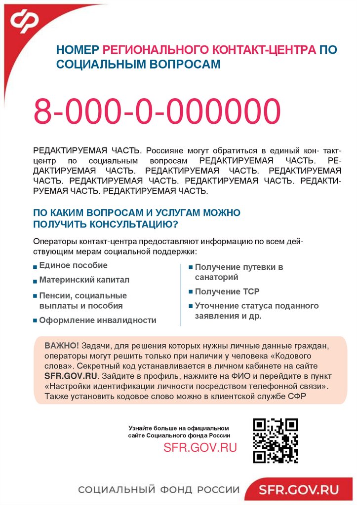 8-000-0-000000РЕДАКТИРУЕМАЯ ЧАСТЬ. Россияне могут обратиться в единый кон- тактцентр по социальным вопросам РЕДАКТИРУЕМАЯ ЧАСТЬ. РЕДАКТИРУЕМАЯ ЧАСТЬ. РЕДАКТИРУЕМАЯ ЧАСТЬ. РЕДАКТИРУЕМАЯ