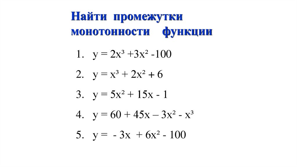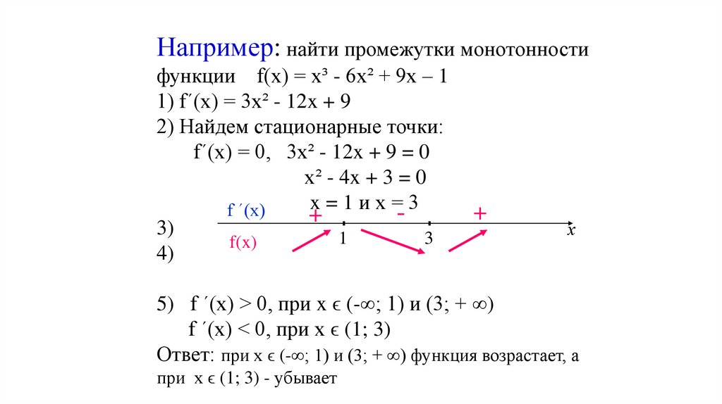 Например: найти промежутки монотонностифункции f(x) = x³ - 6x² + 9x – 1