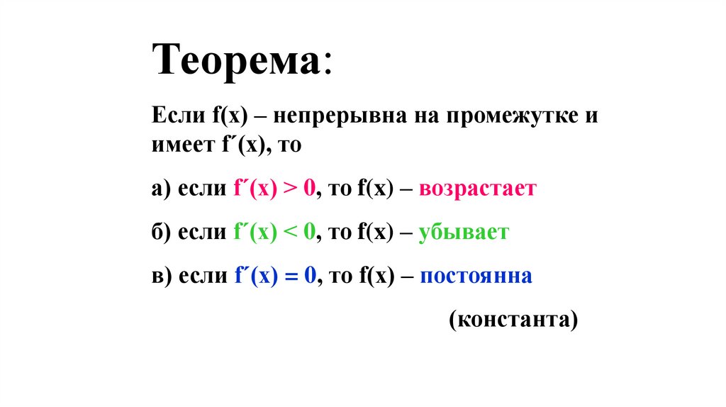 а) если f´(x) > 0, то f(x) – возрастает
