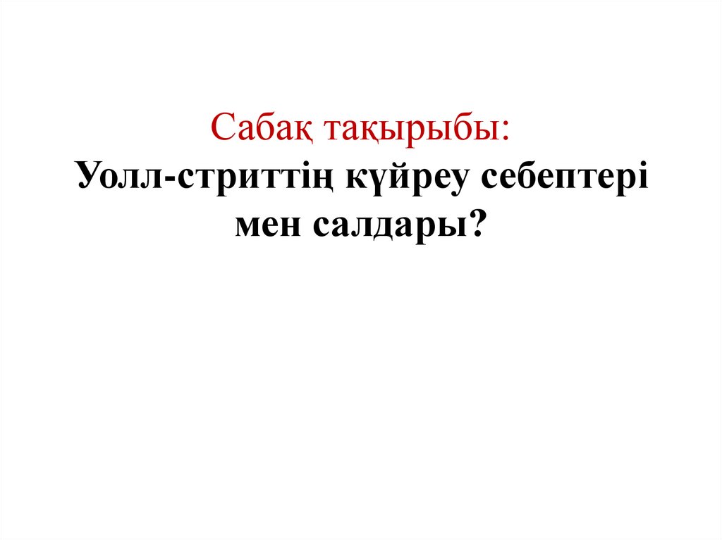 1. Сабақ тақырыбы: Уолл-стриттің күйреу себептері мен салдары?