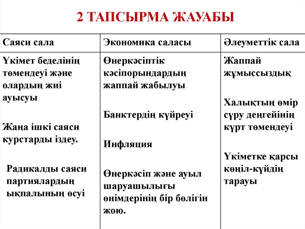 2 ТАПСЫРМА ЖАУАБЫСаяси сала