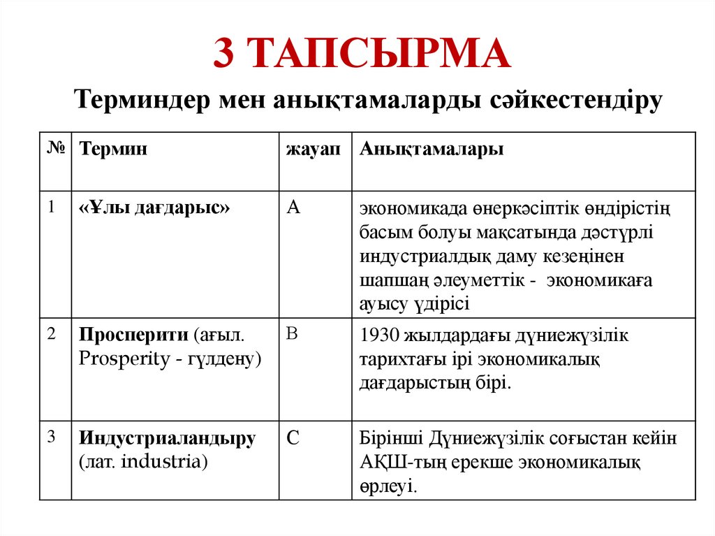 3 ТАПСЫРМАТерминдер мен анықтамаларды сәйкестендіру