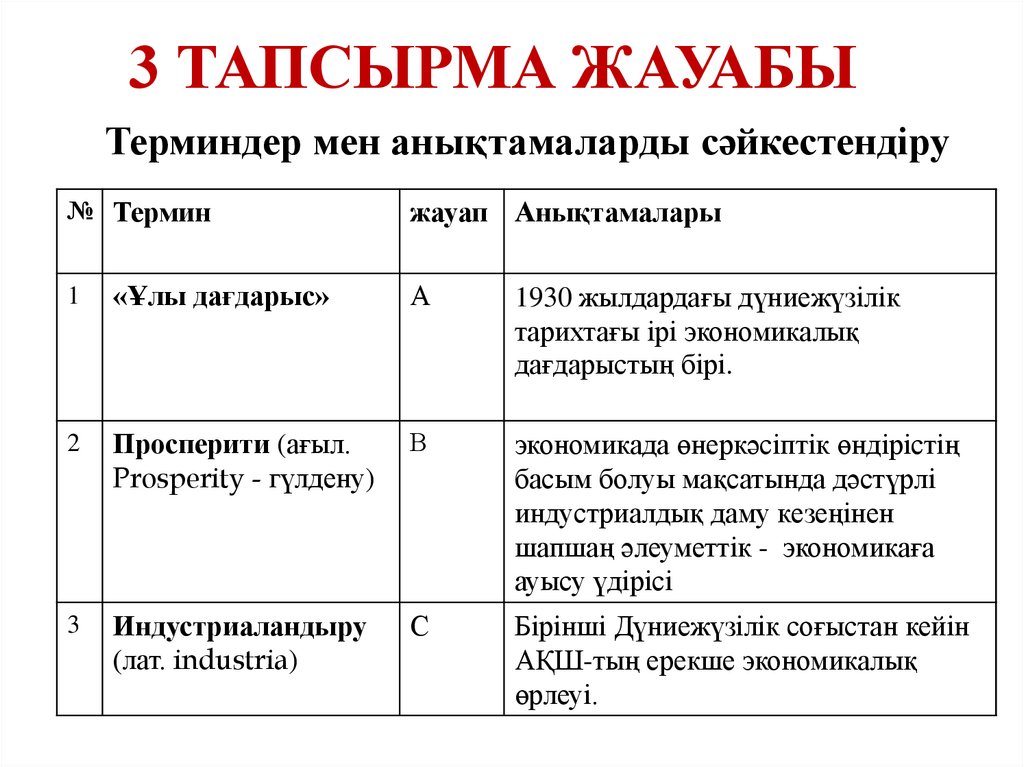 3 ТАПСЫРМА ЖАУАБЫТерминдер мен анықтамаларды сәйкестендіру