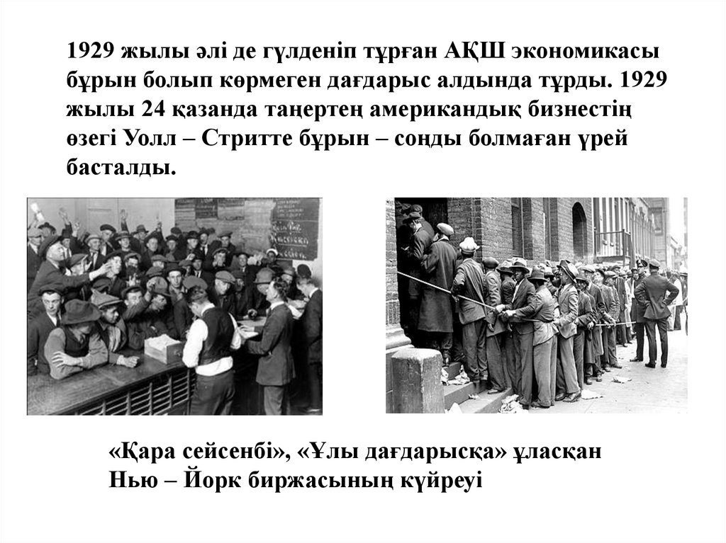 1929 жылы әлі де гүлденіп тұрған АҚШ экономикасыбұрын болып көрмеген дағдарыс алдында тұрды. 1929
