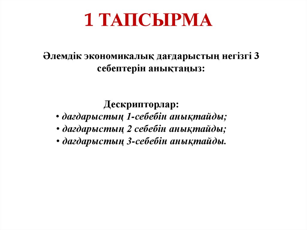 1 ТАПСЫРМАӘлемдік экономикалық дағдарыстың негізгі 3