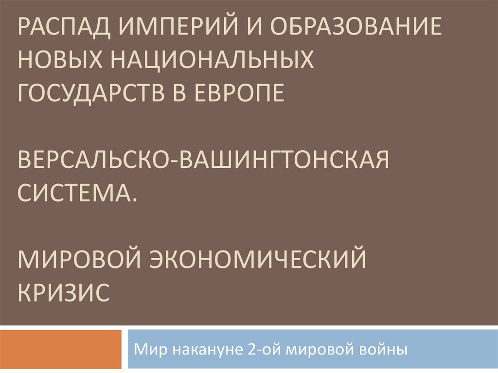 1. Распад империй и образование новых национальных государств в европе версальско-вашингтонская система. Мировой Экономический