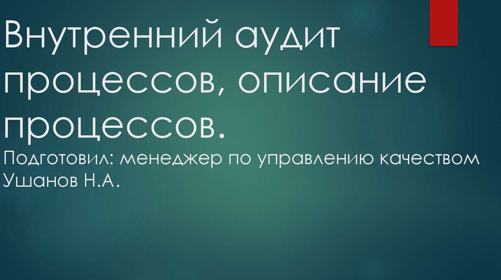 1. Внутренний аудит процессов, описание процессов. Подготовил: менеджер по управлению качеством Ушанов Н.А.