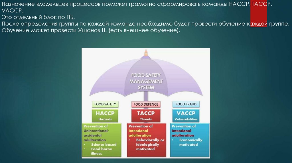 Назначение владельцев процессов поможет грамотно сформировать команды HACCP, TACCP,VACCP.