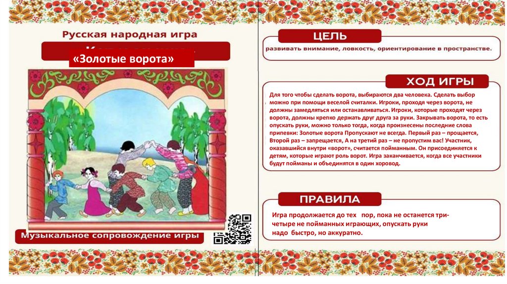 «Золотые ворота»Для того чтобы сделать ворота, выбираются два человека. Сделать выбор