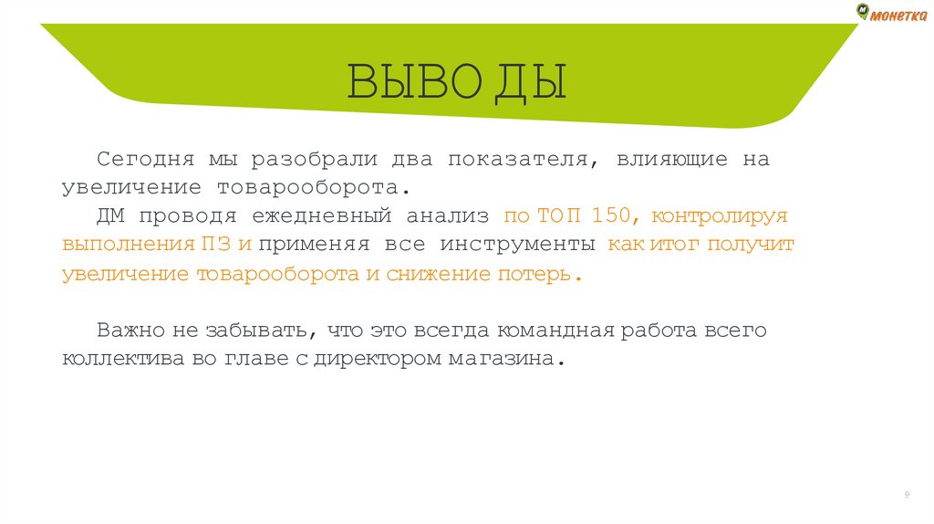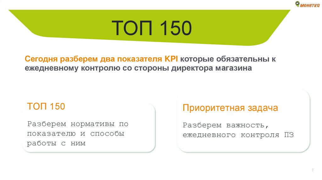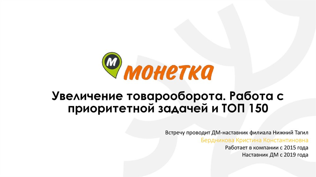 1. Увеличение товарооборота. Работа с приоритетной задачей и ТОП 150