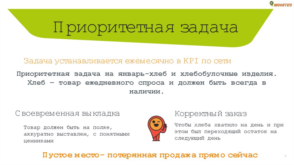 П риоритетная задачаЗадача устанавливается ежемесячно в KPI по сети