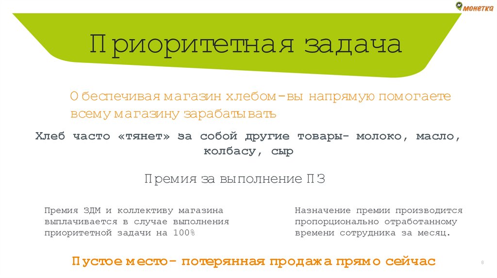 П риоритетная задачаО беспечивая магазин хлебом-вы напрямую помогаете