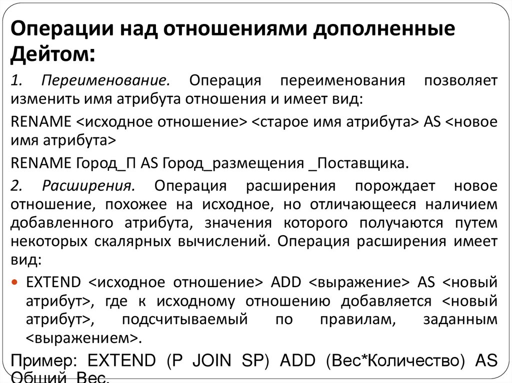 Операции над отношениями дополненныеДейтом: