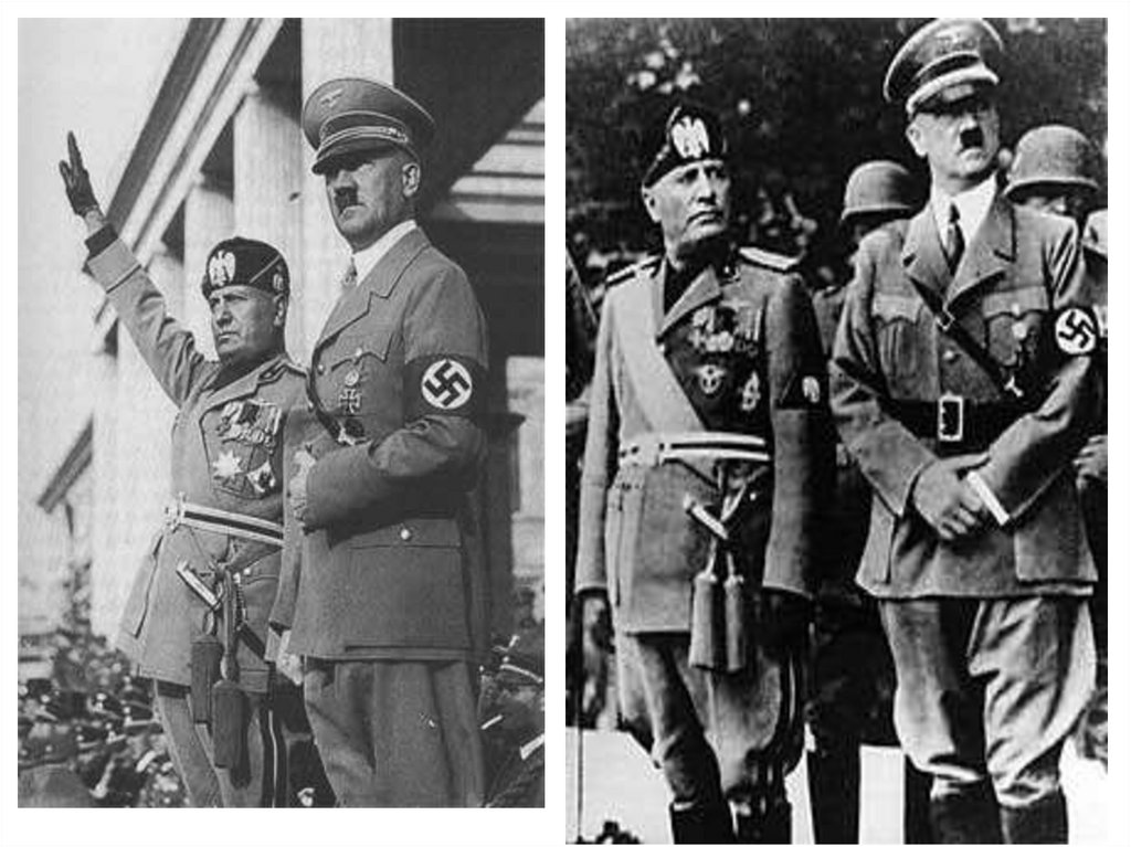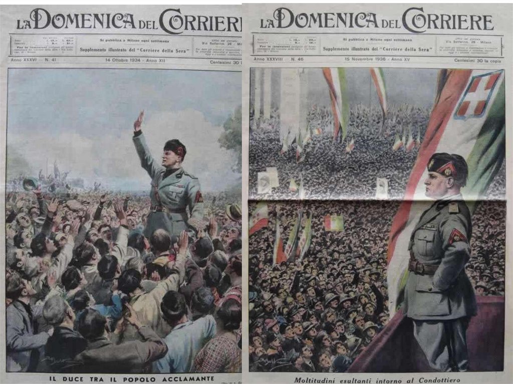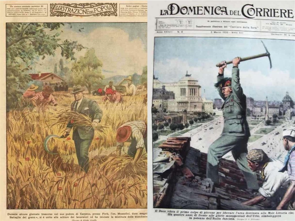 Фашистська пропаганда: ліворуч легенда: Злочини більшовизму в 1919 р .,праворуч Добрі справи фашизму в 1923 р.