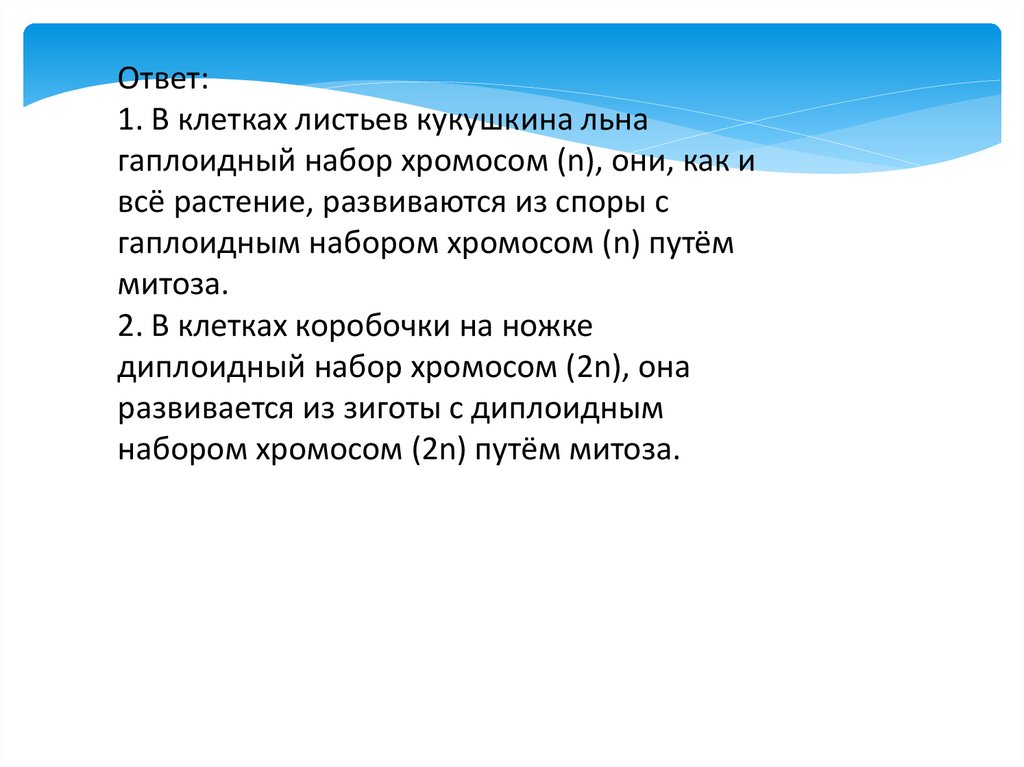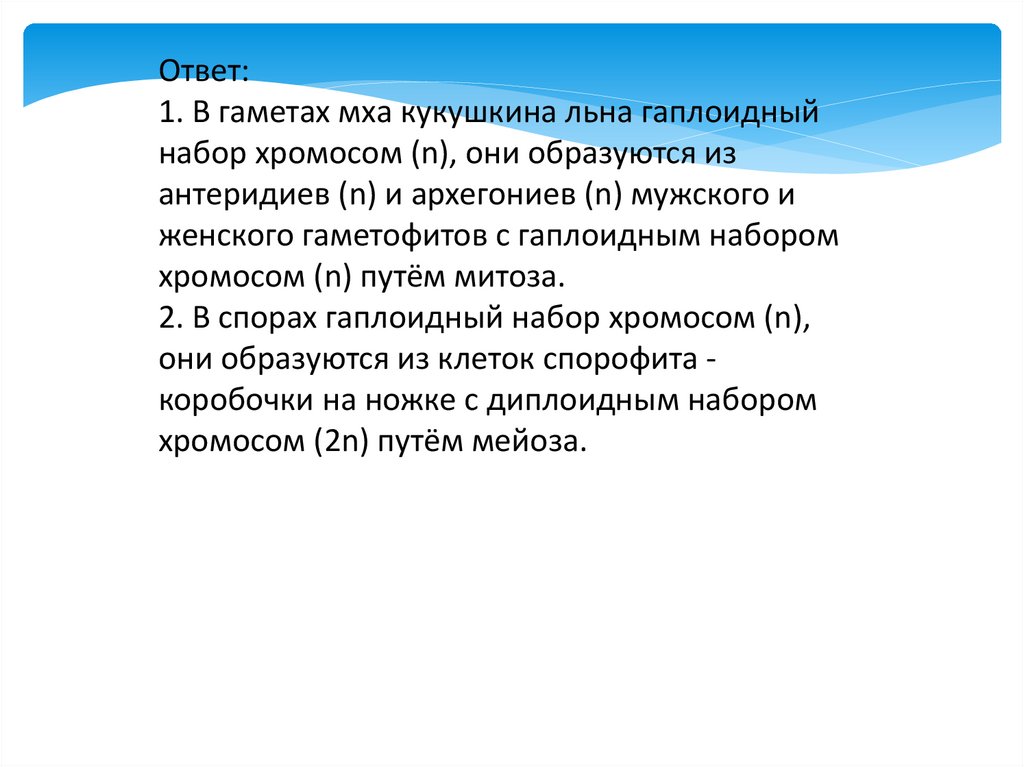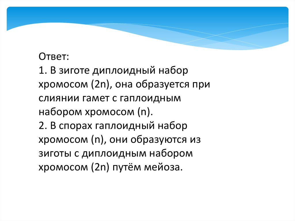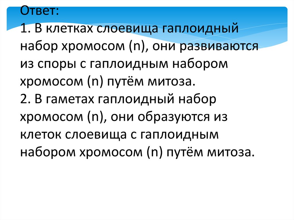 Ответ:1. В клетках слоевища гаплоидный