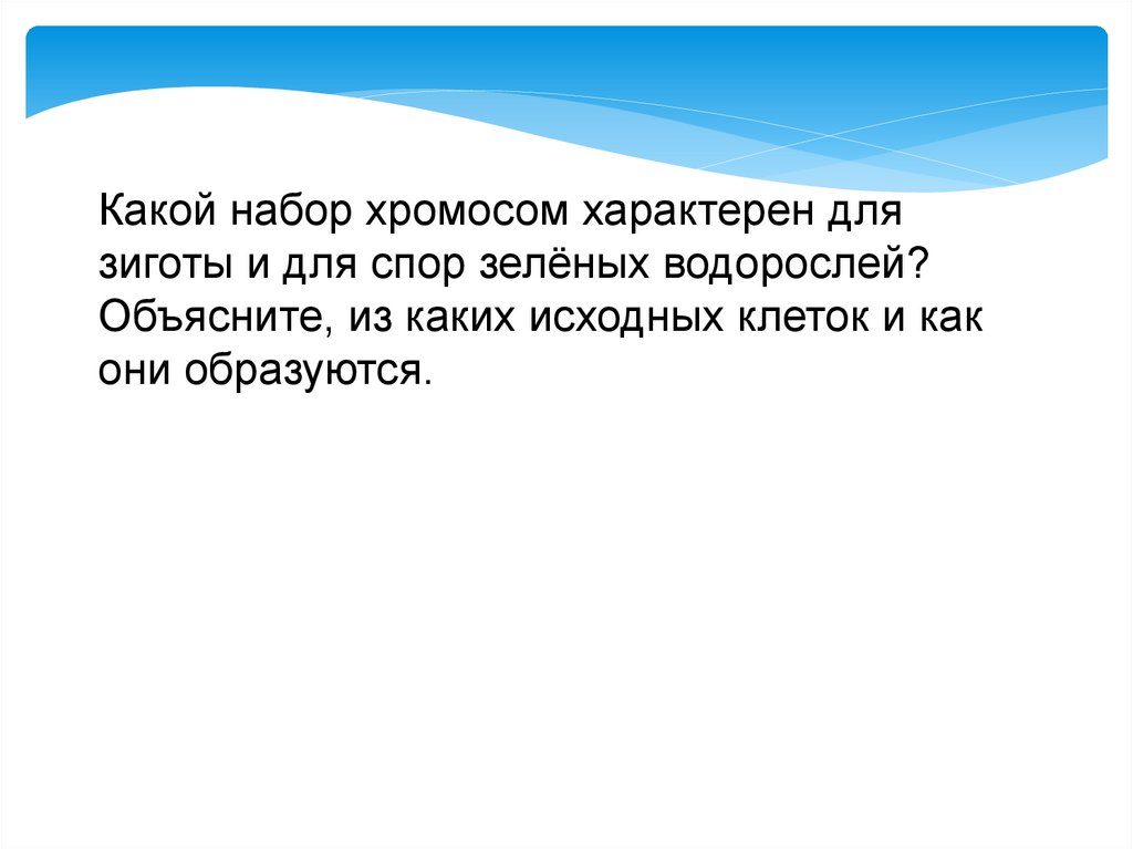 Какой набор хромосом характерен длязиготы и для спор зелёных водорослей?