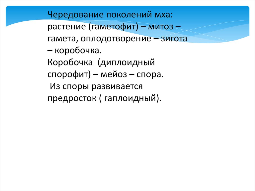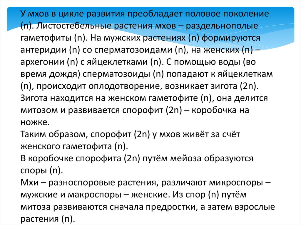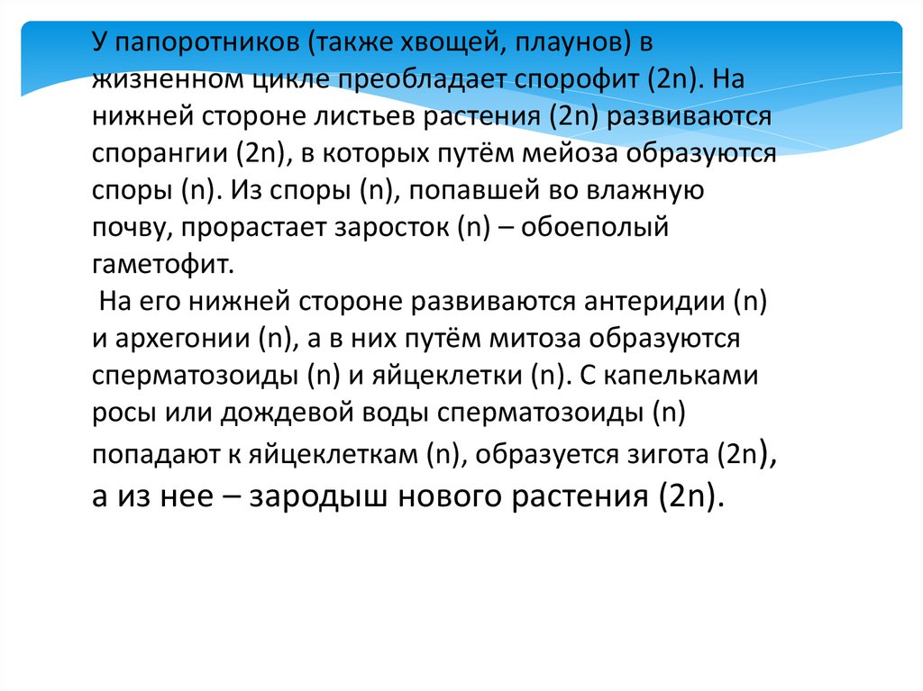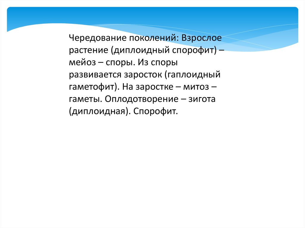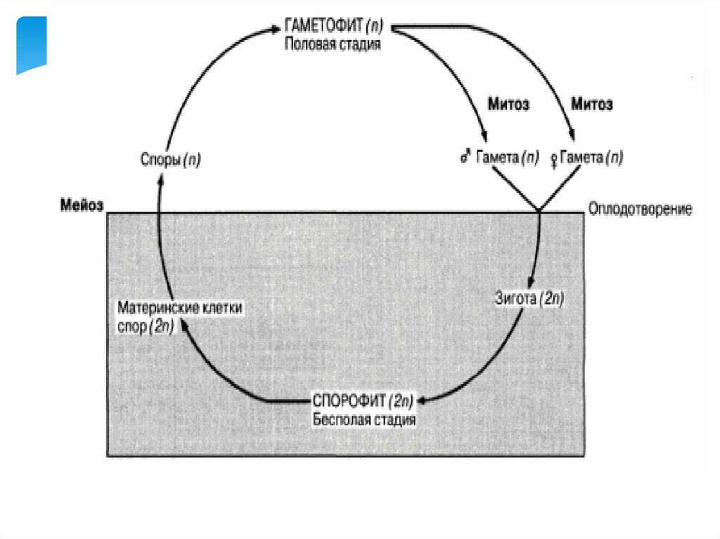 • Гаметофит (n) – половое поколение растений, гаплоидная