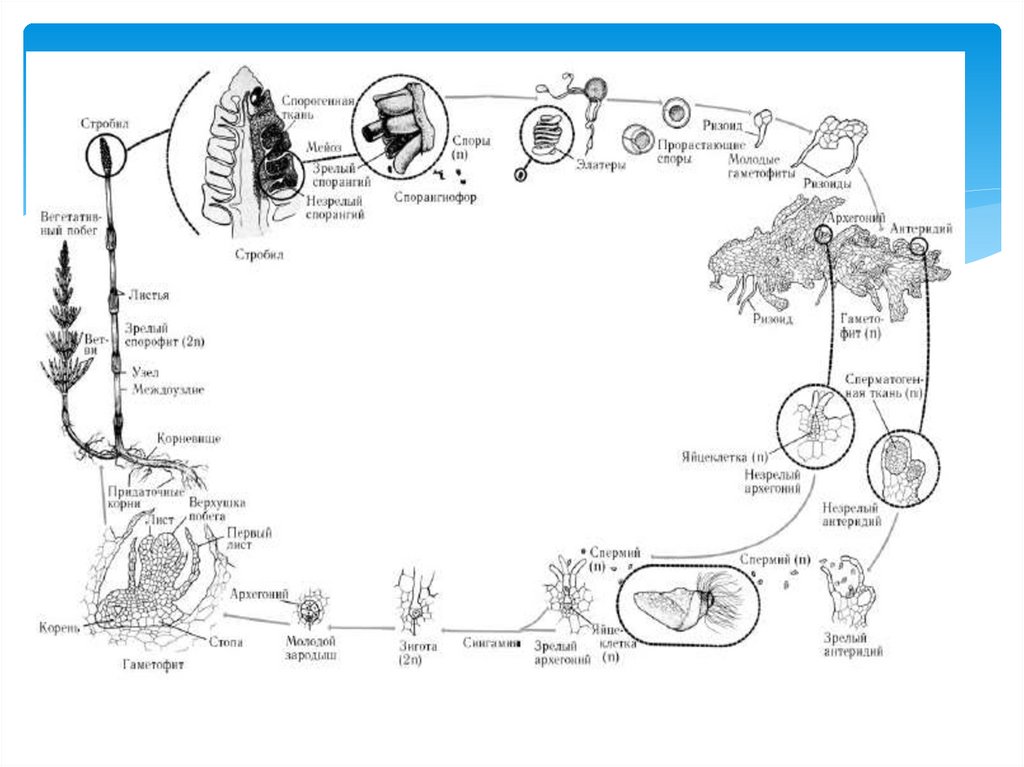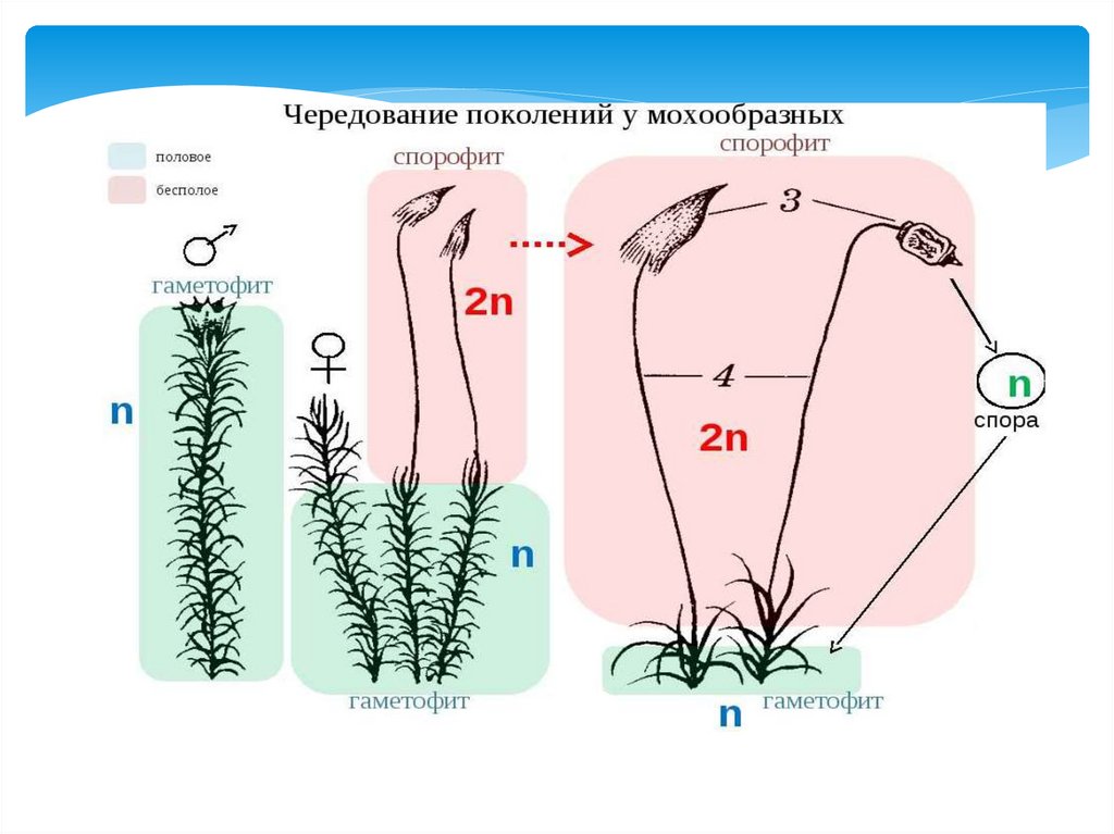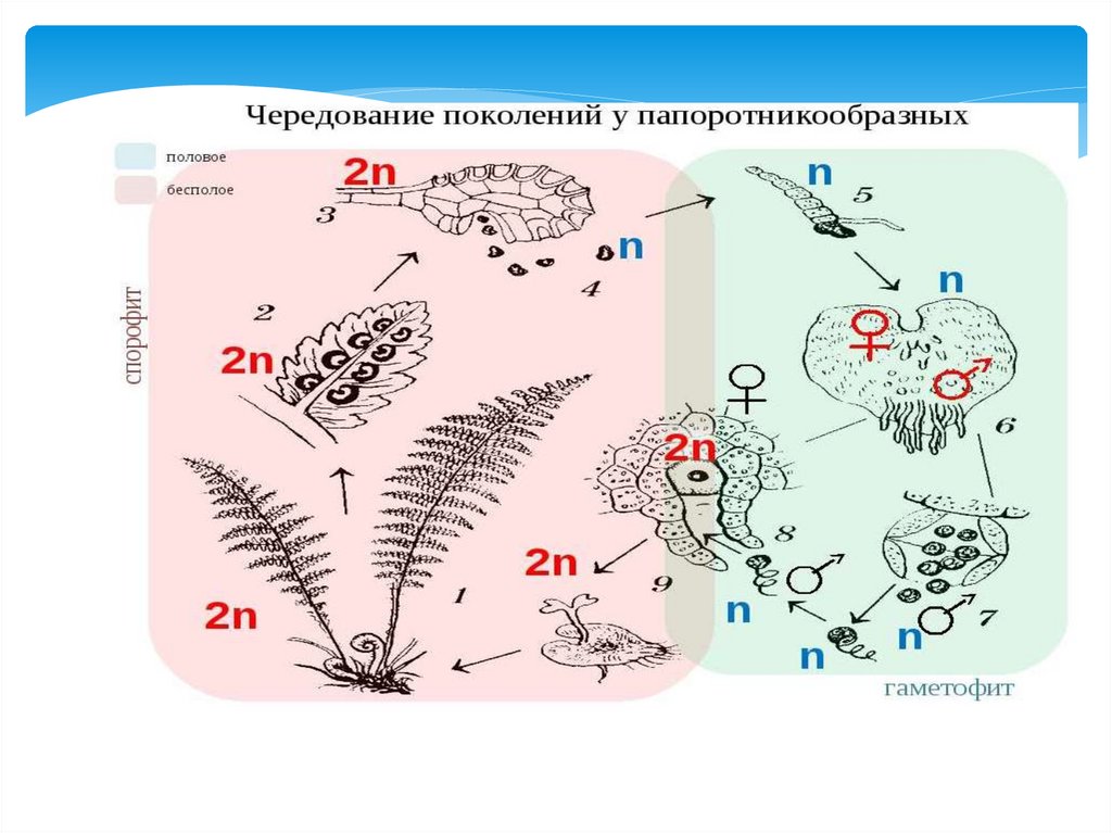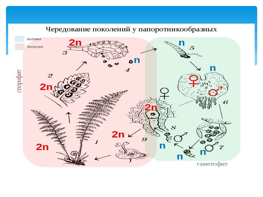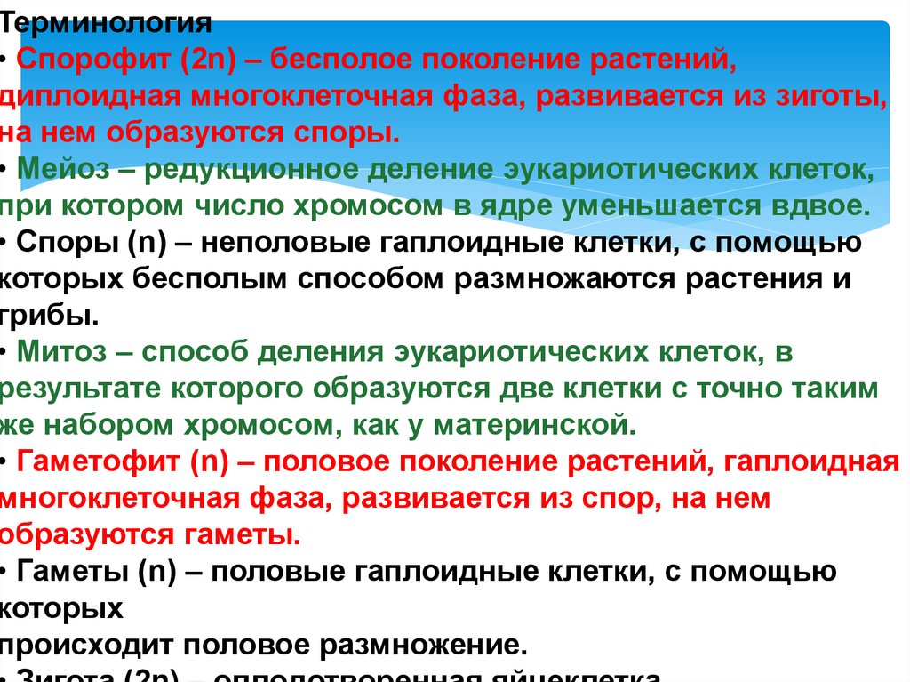 Терминология• Спорофит (2n) – бесполое поколение растений,