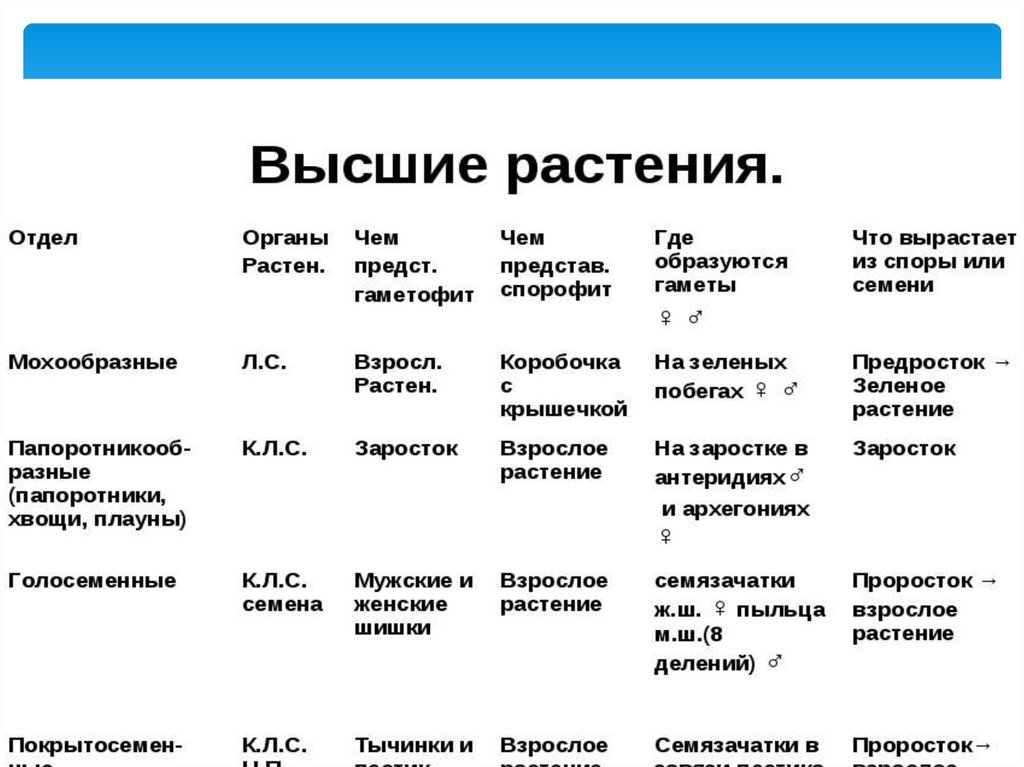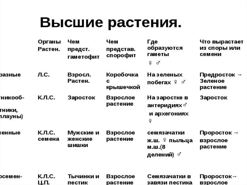 все высшие растения имеют четкую