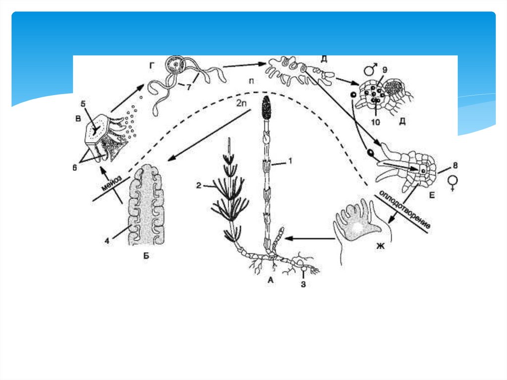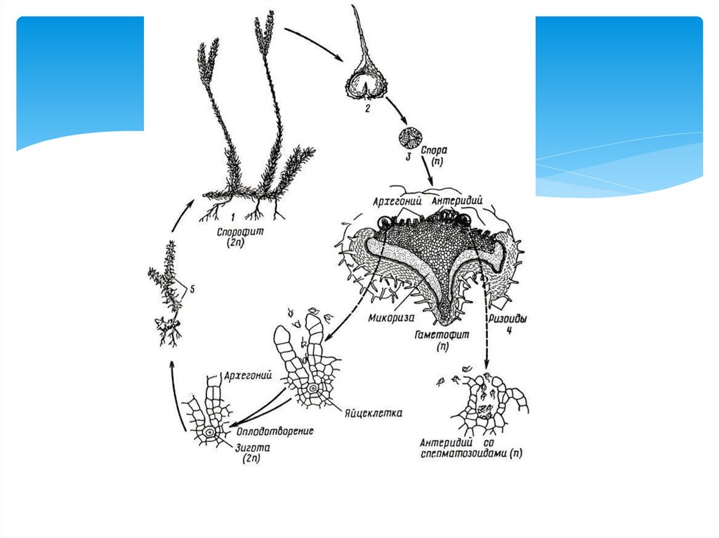 зиготы → развитие диплоидного спорофита → и
