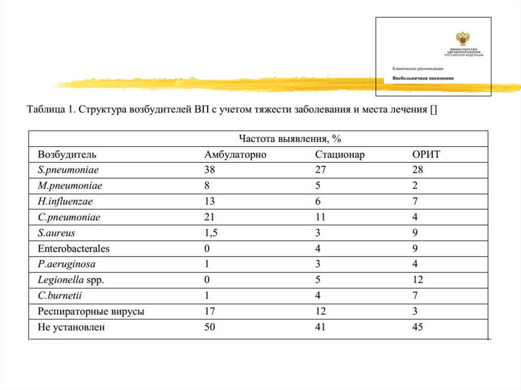 ЭТИОЛОГИЯ ВНЕБОЛЬНИЧНОЙПНЕВМОНИИ