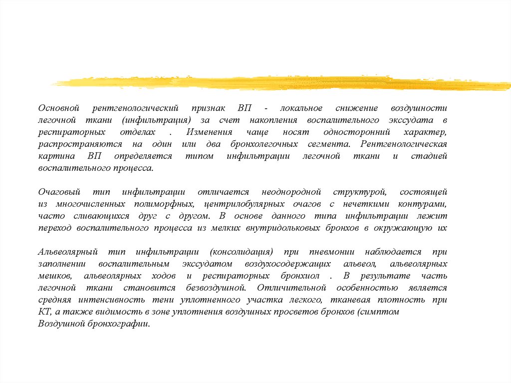 Медленно разрешающаяся/неразрешающаяся ВП отсутствие рентгенологического разрешения очаговоинфильтративных изменений в легких в течение 4-х недель