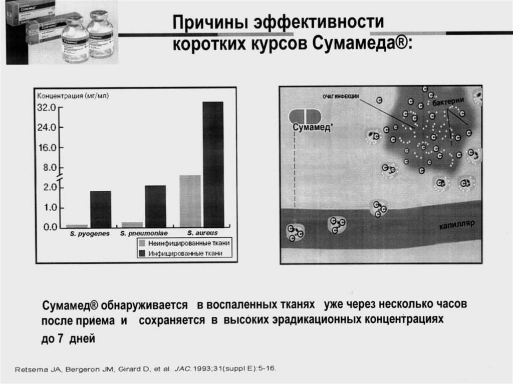 • Высокие длительно сохраняющиеся концентрации в